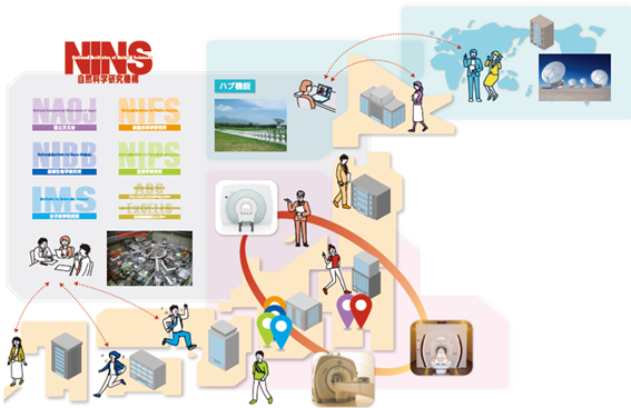 このため、自然科学研究機構の各研究機関には、全国の国公私立大学や研究機関から研究者が多数集まり、所属の枠を越えた共同利用・共同研究が日々行われています。
